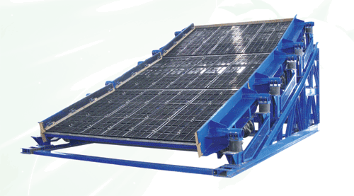 由于受承載極限轉(zhuǎn)速的限制及篩框結(jié)構強度的影響,目前國內(nèi)的傳統(tǒng)振動篩不易做到高頻化、大型化。等厚分段篩分為多段篩分單元,各篩分單元分別獨立振動,使得各篩分單元均可實現(xiàn)較大的振動強度,大振動強度可大幅度提高振動篩的生產(chǎn)率和篩分效率,同時使篩子實現(xiàn)了大型化。各篩分單元的獨立振動,對機架的振動得以分散,可降低整機的振動強度,由于等厚分段篩在設計原理上所具有的優(yōu)點,使得等厚分段篩具有使用壽命長,噪聲低,對廠房影響小的特點,是一種環(huán)保型篩分設備。